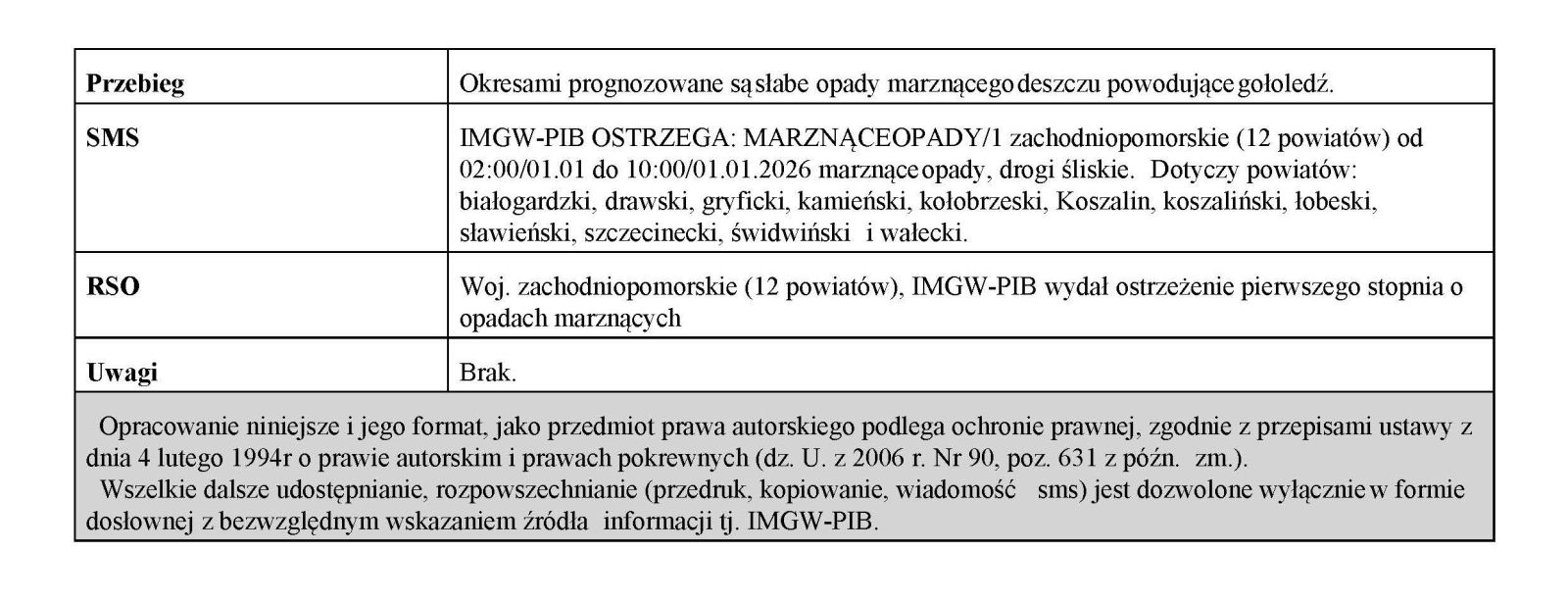 IMGW-PIB wydał ostrzeżenie pierwszego stopnia o opadach marznących