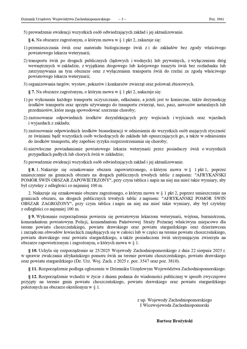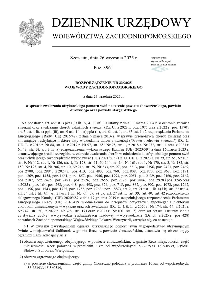 Rozporządzenie Nr 33/2025 Wojewody Zachodniopomorskiego z dnia 25 września 2025 r.