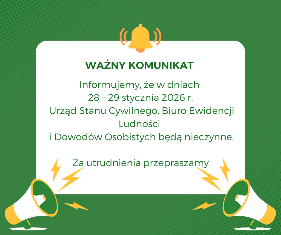 Ważny komunikat odnośnie biura Urzędu Stanu Cywilnego